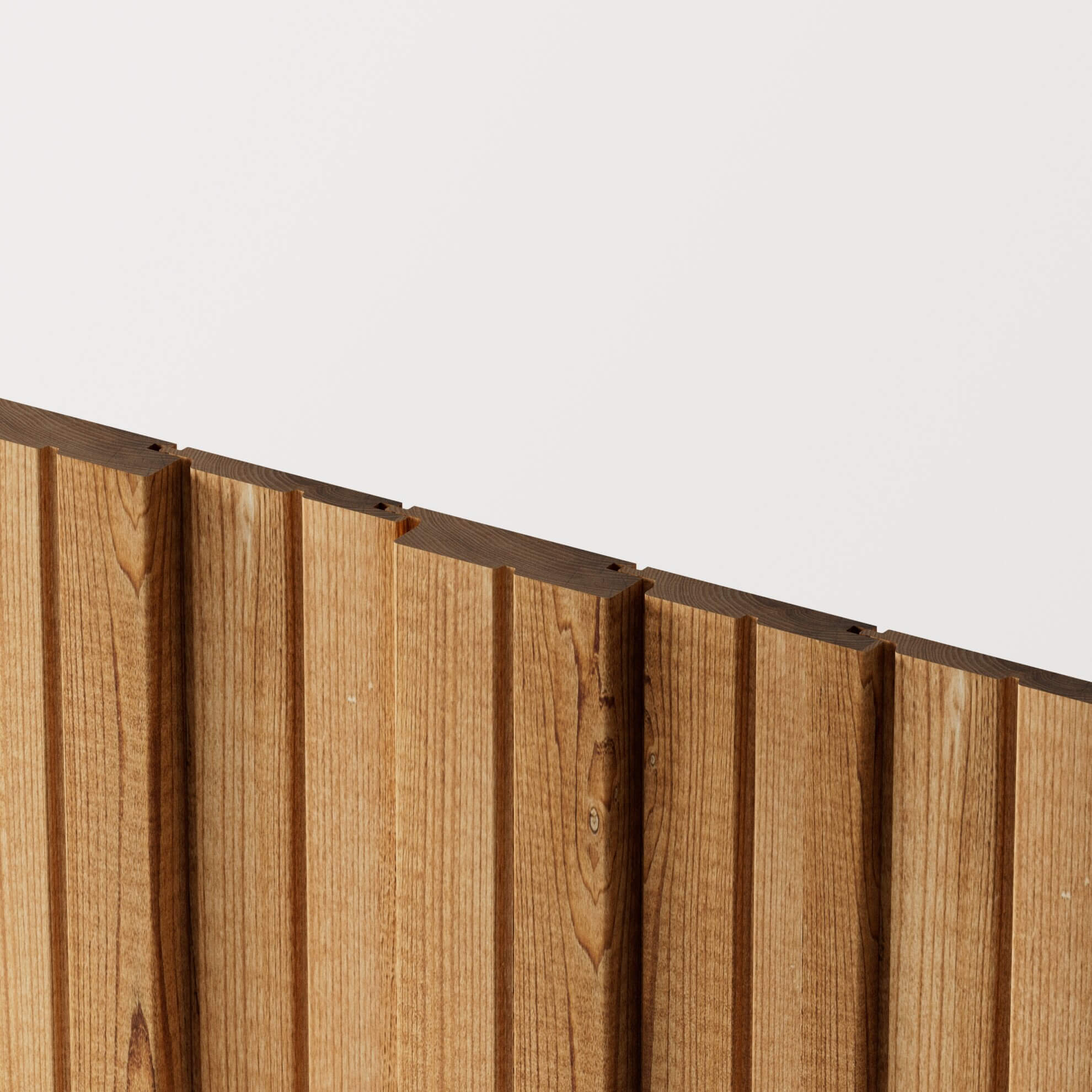 Platonium 12 est un profil adapté à une fixation invisible avec fausse feuillure. La languette allongée du P12 offre de l’espace pour une vis ou un clou, qui est ensuite recouvert par la rainure de la planche suivante. Le résultat est une façade sans trous de vis ni de clous visibles.