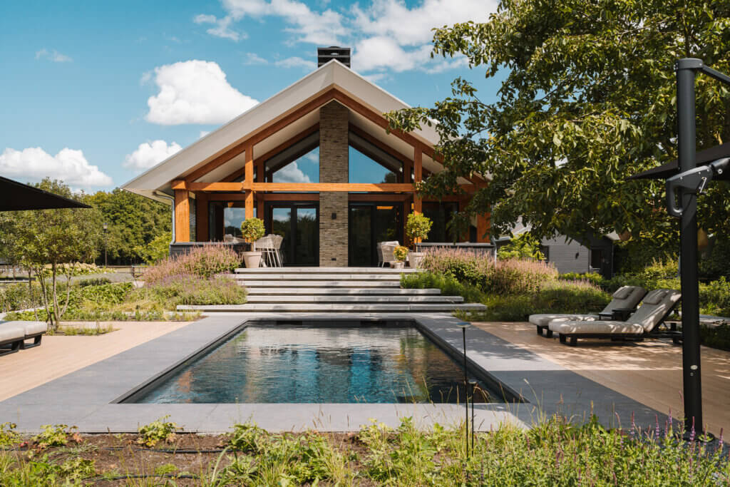 La maison adopte de nombreuses formes. Cela exige une finition sobre et uniforme, à l’intérieur comme à l’extérieur. Dès le début du projet, architecte et architecte d’intérieur ont donc travaillé main dans la main pour harmoniser leurs visions.